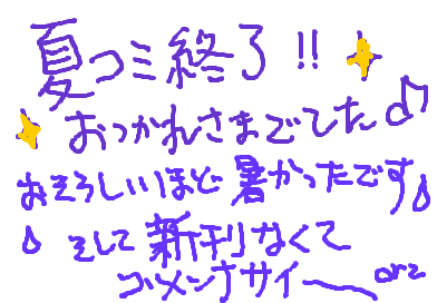 でもこれで、コミケと関西が終わって、夏の楽しい期間が終わってしまいました。。。